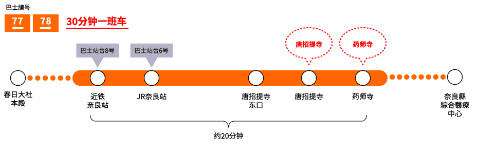 | JR/近铁奈良站→唐招提寺东口 | 310日元 | 160日元 |