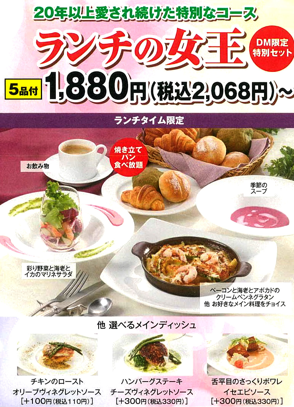 クーポン限定「ランチの女王」コース