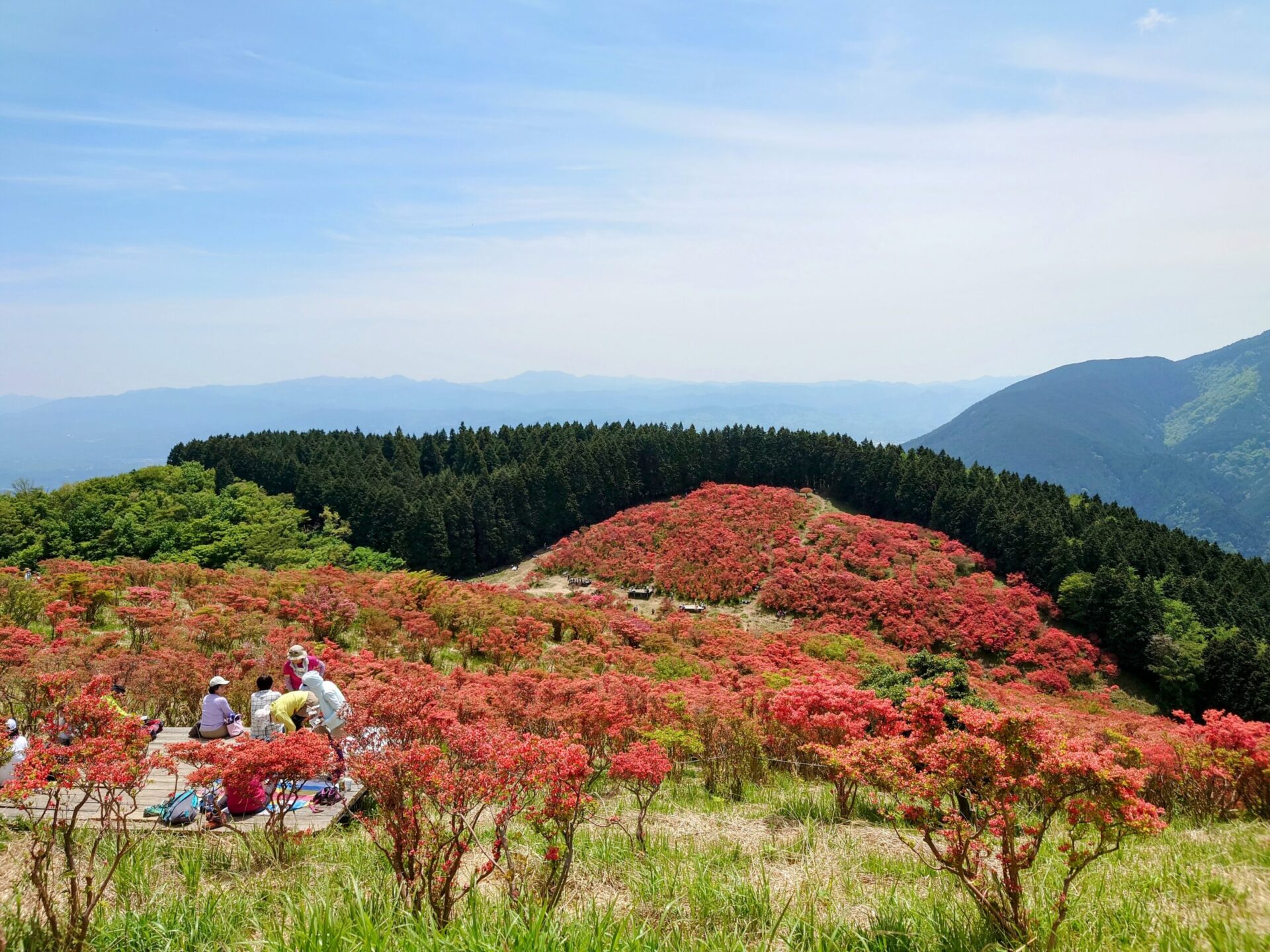 水越峠をはさんで北にそびえたつ葛城山は、5月になると高原一面にツツジが咲きその様子は「一目百万本」と形容されるほど。